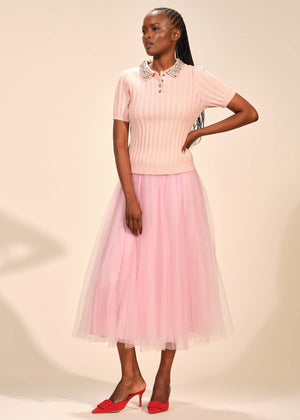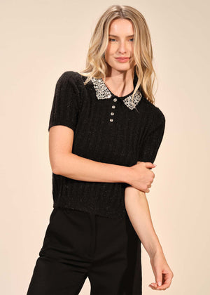 Step into the spotlight with our Cableknit Crystal Polo — where classic charm meets a touch of sparkle! This isn't just any polo; it's your ticket to effortlessly chic style with a sprinkle of sophistication. Perfect for brunching with friends or making a statement at the office, this polo is all about versatility and flair. Pair it with your favorite high-waisted jeans or a sleek pencil skirt, and watch as heads turn. It's all about bringing out your inner fashionista while keeping things cozy and classy.