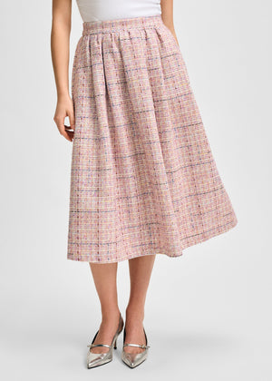 This Tweed Midi Tea Skirt is a vintage-inspired piece that brings timeless charm to any wardrobe. The soft, structured tweed fabric creates a flattering, A-line silhouette, while the midi length adds a touch of elegance. Pair it with a blouse for a classic tea party look, or dress it down for casual outings with a simple tee.