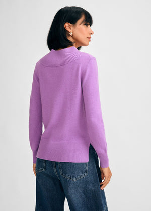 The Mock Neck Sweater brings a vibrant twist to a classic silhouette. Available in Multi-Stripe, Black/Oyster Stripe, and Orchid, this cashmere/wool blend sweater stands out with its bold patterns and rich colors and very soft hand.