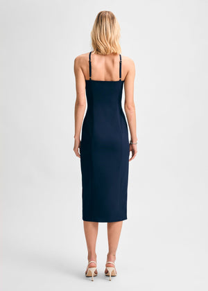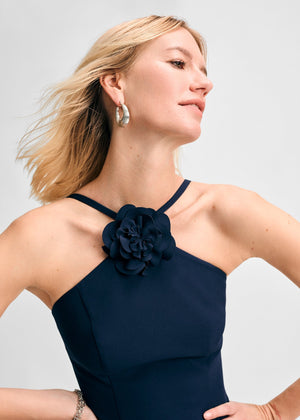 Designed with a sophisticated pencil cut, this dress hugs the body and creates a flattering, tailored silhouette. The standout feature is the elegant rosette detailing, which adds a romantic touch to this classic piece. Whether you're heading to a formal event or an evening out, this dress is a showstopper.