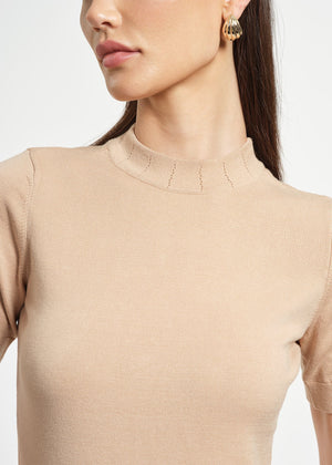Alright fashionistas, let's talk about this little gem: the Mock Neck Short Sleeve Sweater. It's like your favorite turtleneck got a summer makeover and is ready to grace you with its presence. Perfect for those breezy evenings when you're not quite sure if the weather will cooperate with your plans, this sweater is your stylish solution. Whether you're heading to a casual brunch or a chic evening out, this piece effortlessly elevates your look with its sleek silhouette and sophisticated vibe. Pair it with high-waisted jeans or a sassy skirt, and you're ready to turn heads.