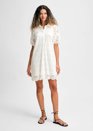 Eyelet Short Puff Sleeve Shirt Dress