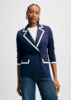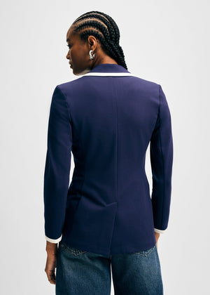 This Piped Ponte Blazer is a chic and modern addition to your wardrobe. Crafted from stretchy, comfortable ponte fabric, it offers a tailored fit that flatters the body while providing ease of movement. With its sharp lapels and clean lines, this blazer is perfect for professional settings or a polished weekend look.